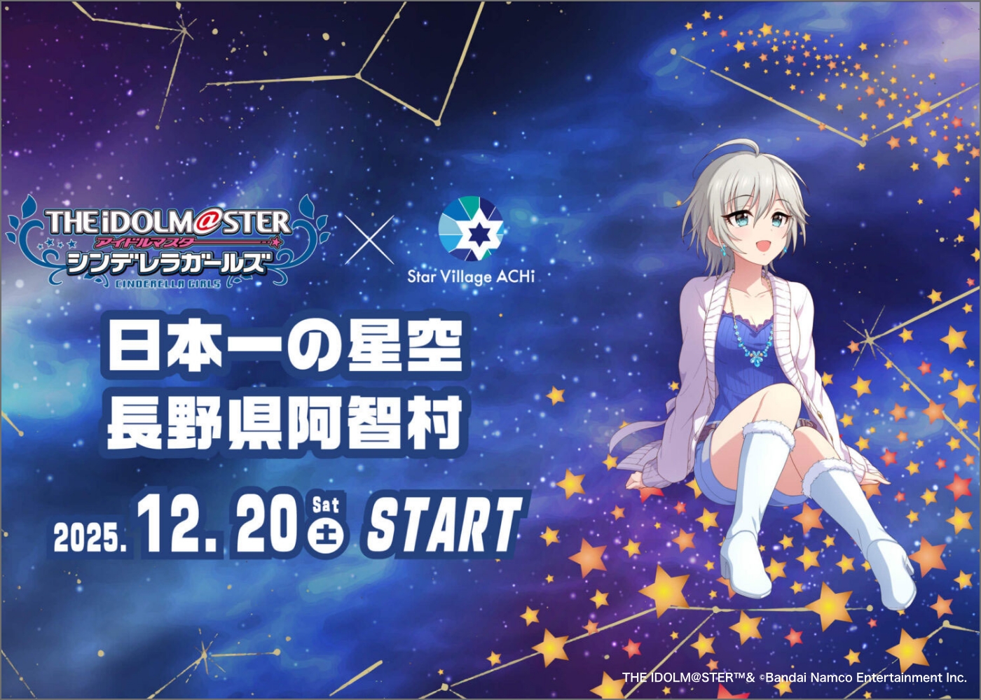 このたび、『アイドルマスター』シリーズ20周年記念「47都道府県イラスト企画」で長野県に訪れたアナスタシアと日本一の星空「長野県阿智村」がコラボレーション。この期間に是非、阿智村にお越しください。