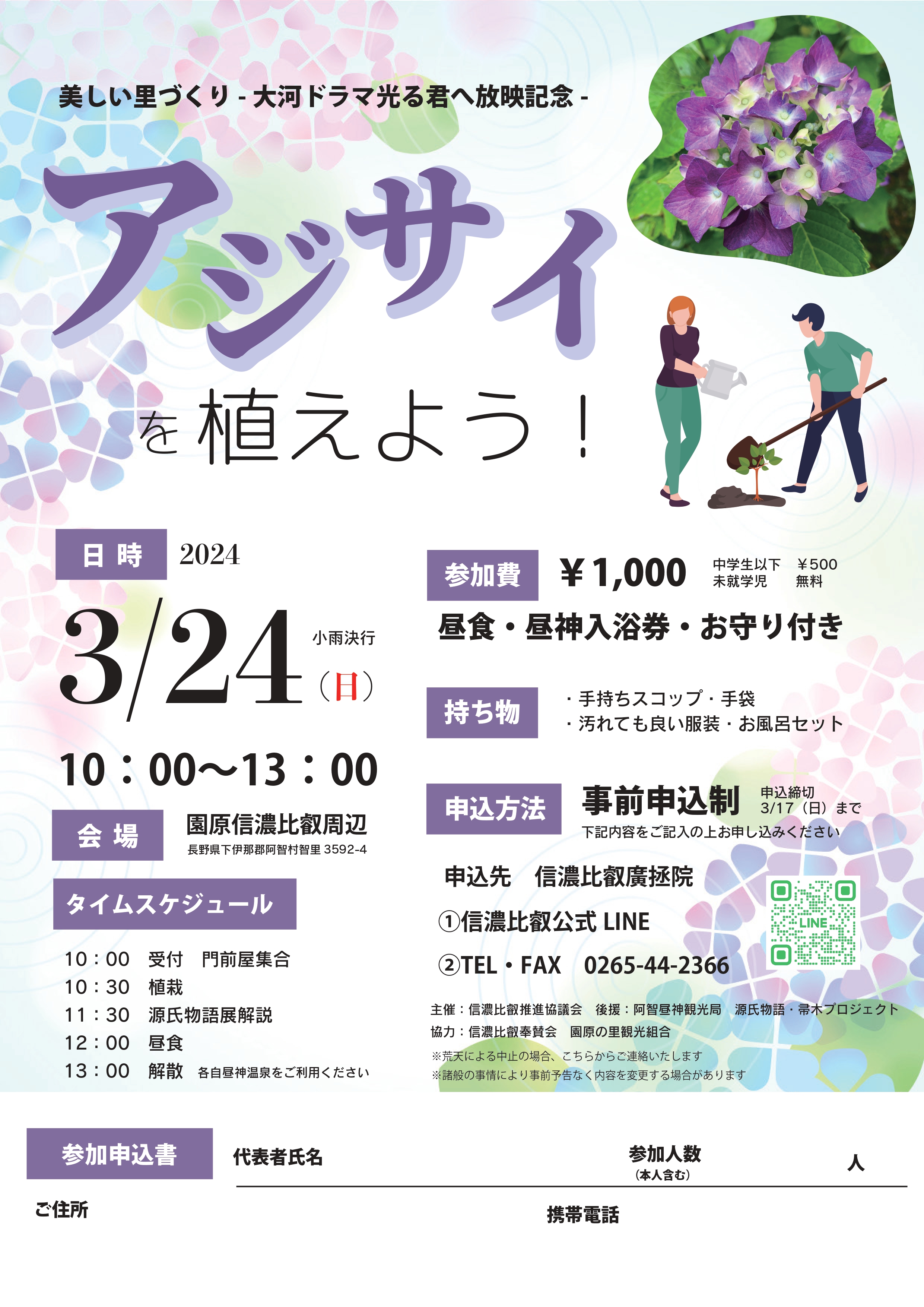 「源氏物語」帚木の地に花をいっぱいに!アジサイ植栽イベントを開催します