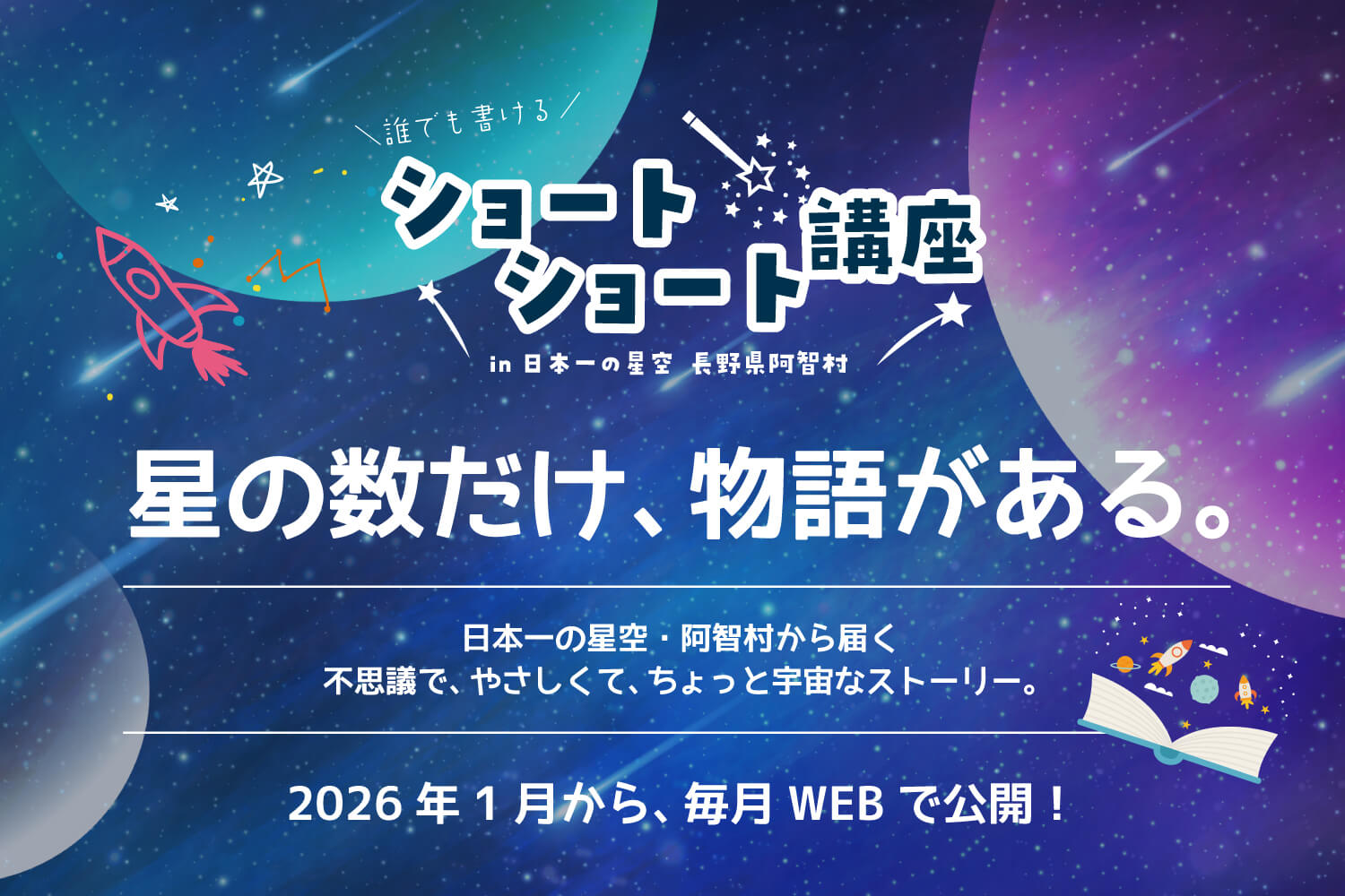 日本一の星空「長野県阿智村」の、株式会社阿智昼神観光局(代表取締役社長:白澤裕次)は、2026年1月より、スタービレッジ阿智WEBサイト(http://info.sva.jp/)にて、星や宇宙にちなんだ不思議なショートショート作品を毎月2~3作品ずつ公開いたします。
