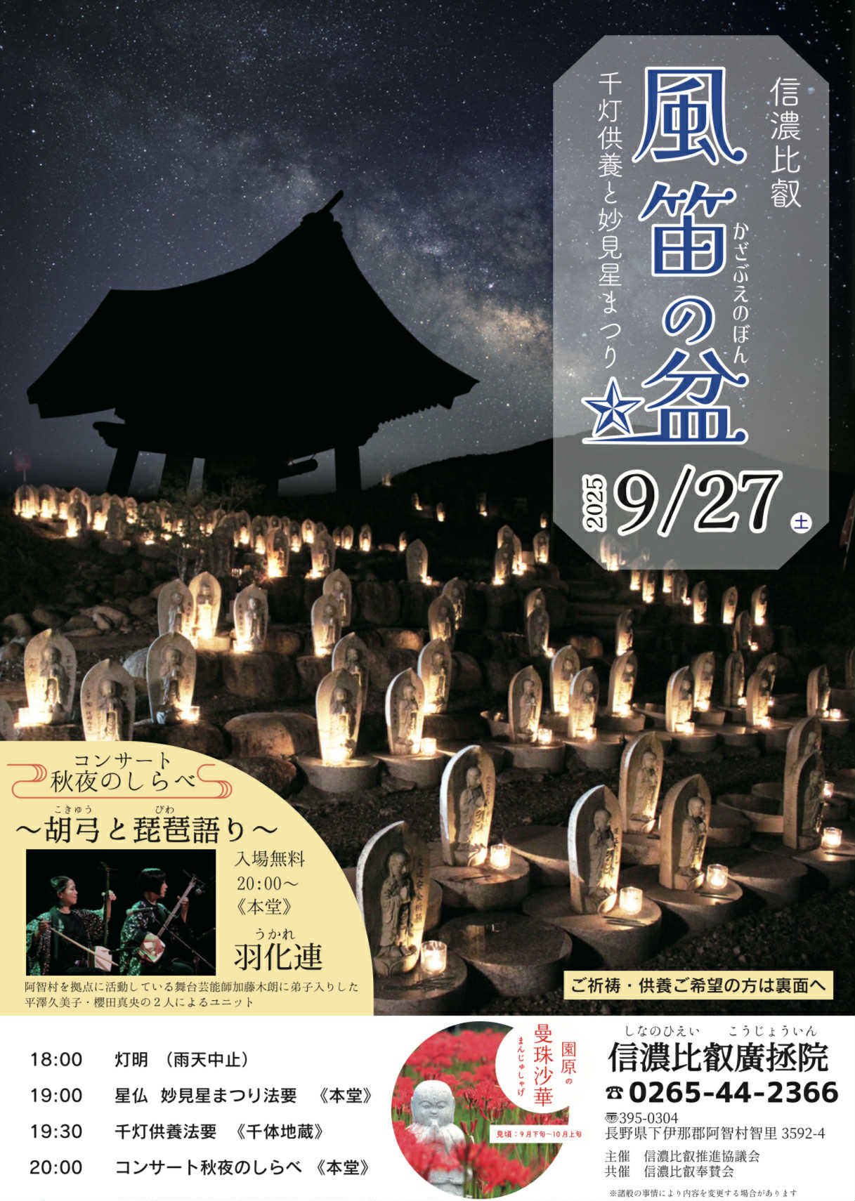 【信濃比叡 廣拯院】9/27(土) 風笛の盆 千灯供養と妙見星まつりが行われます