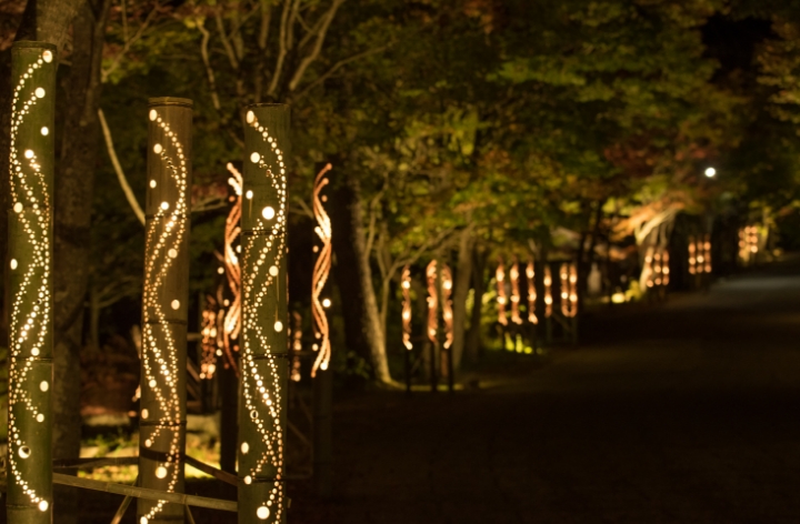 星空とともに、竹あかりをながめながら、夜の温泉街散歩をおたのしみください。