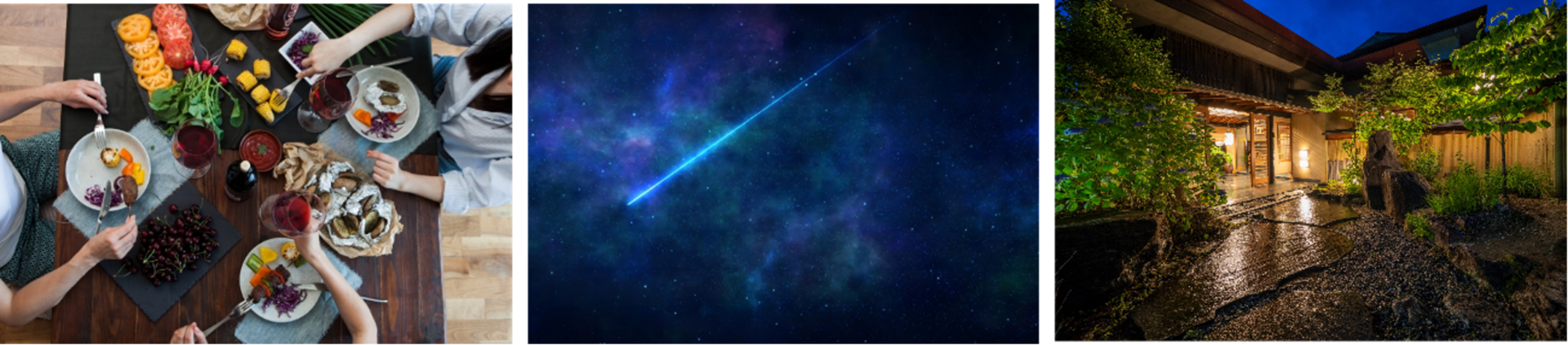 対象プランでご宿泊頂いた方の中から抽選で3名様の願い事を、日本一の星空の村が叶えます