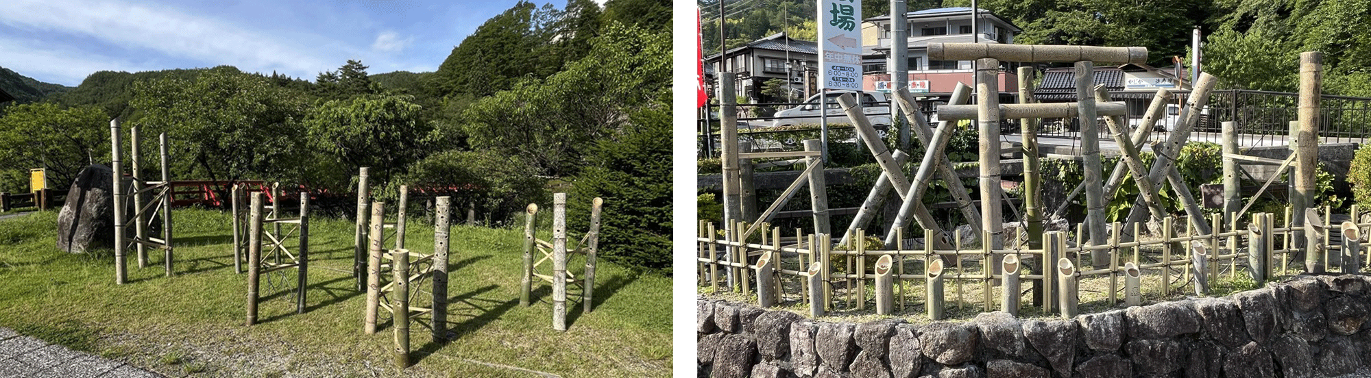 このたび、2024年7月7日(日)〜8月31日(土)までの期間、昼神温泉を中心に村内各所で竹あかりが 煌めく「日本一の星空 阿智村七夕まつり」開催にあたり、観光でお越しいただくお客様に温泉街の街歩 きを楽しんでいただきという想いから、放置竹林からの竹の伐採、電動ドリルでの穴あけ、デザイン考 案、設置を、株式会社阿智昼神観光局、昼神温泉旅館⻘年部などの組織と協力して行いました。